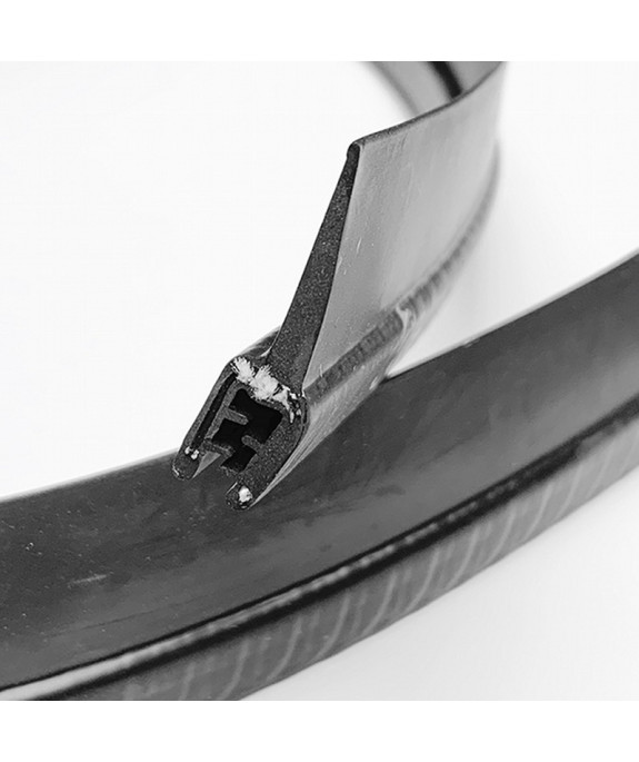 Ce profilés est réalisé en EPDM souple de dureté 65shA. Il possède une armature métallique interne pour une meilleure tenue. Il est destiné à être monté sur un rebord d'épaisseur entre 1 mm et 3 mm. .